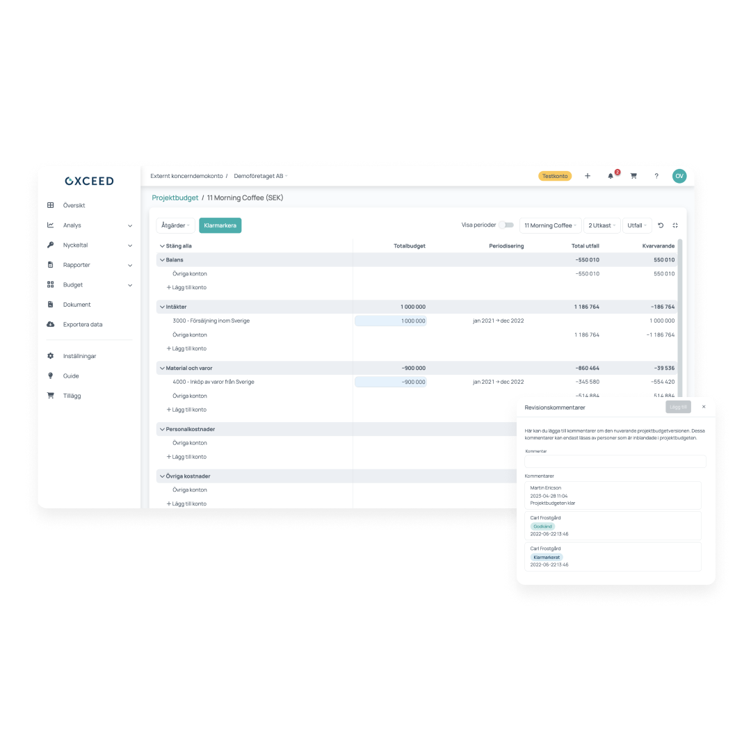 Oxceed erbjuder ett bra sätt för oss att smidigt kunna anpassa våra rapporter för vår rapportering. Möjligheterna att skapa budget från tidigare års utfall är också väldigt uppskattat.