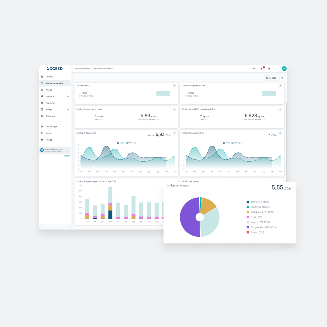 Mät och följ upp företagets klimatpåverkan baserat på bokföringsdata. Visualisera era koldioxidutsläpp automatiskt i den löpande rapporteringen.