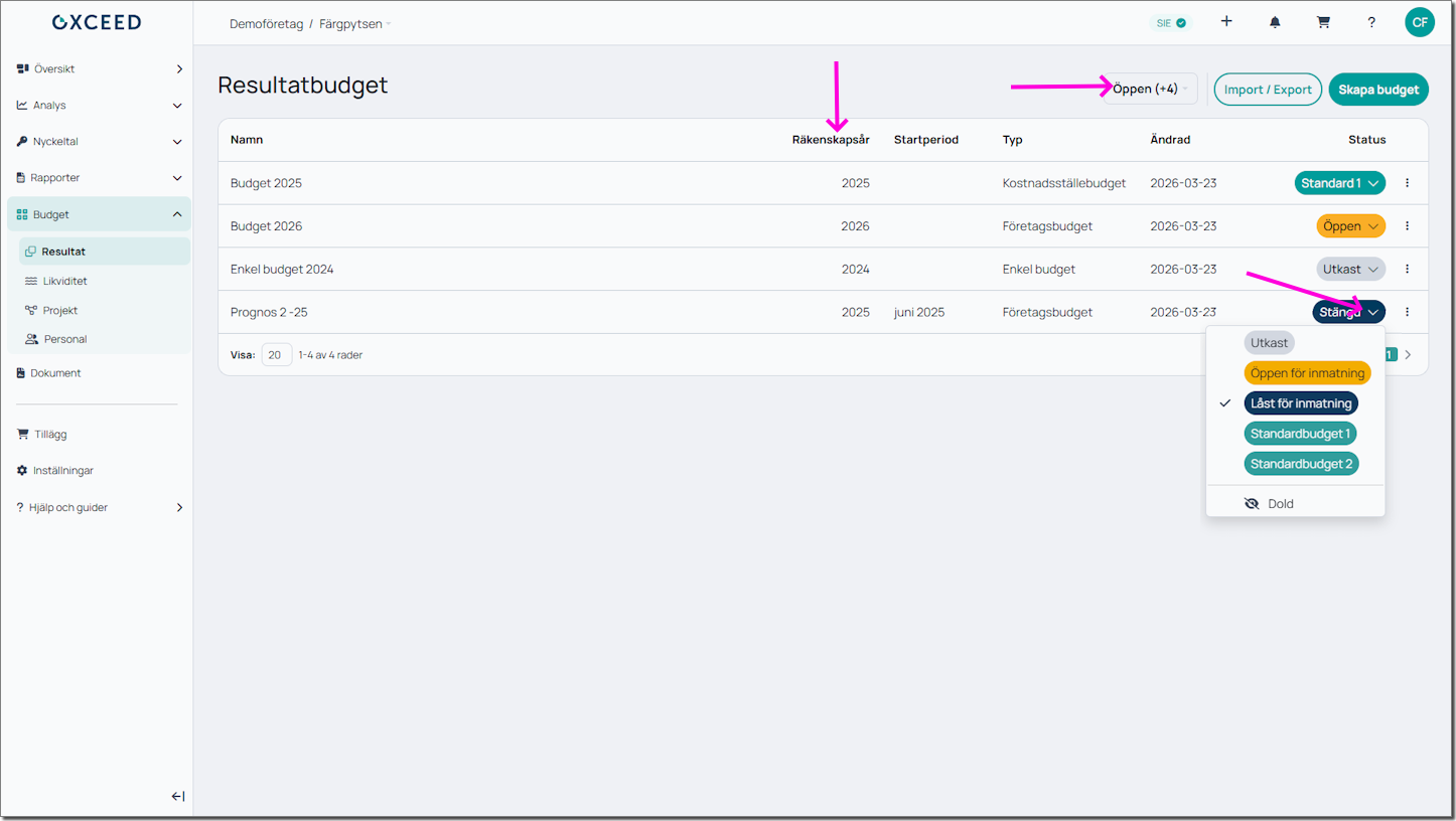 Vi har utökat funktionen av budgetimport från SIE-fil så att du kan importera både företagsbudget och kostnadsställebudget från SIE-fil.